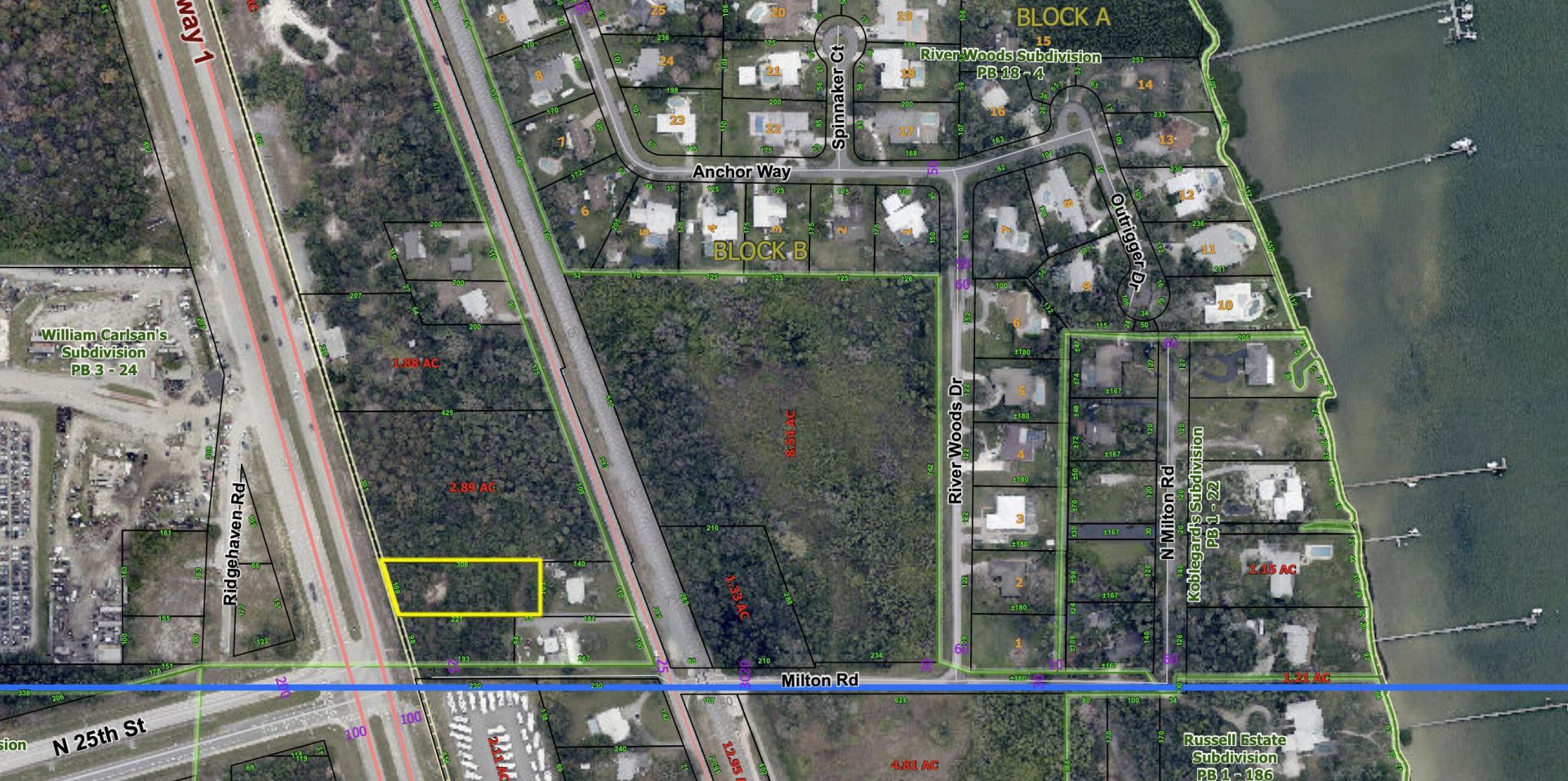 .69 acre lot in prime location on US Highway 1. Located on the east side of US1 with Old Dixie to the east. Just north of the N 25th Street intersection with Milton. Second lot up from Milton Road.