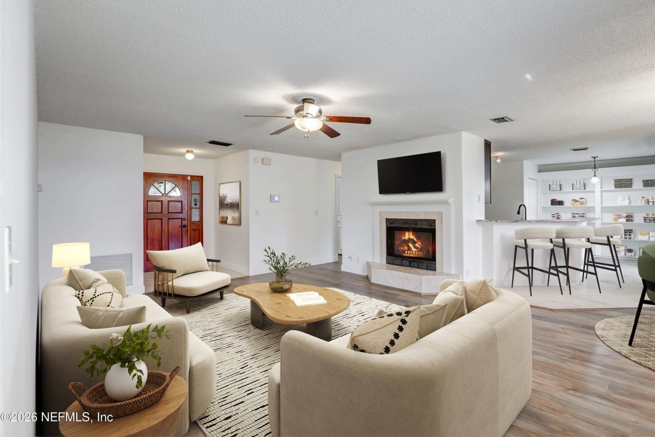 **UPDATED**SPLIT BED FLOORPLAN**GREAT LOCATION** Welcome home to this beautifully updated residence that perfectly blends modern luxury with everyday comfort. The OPEN LAYOUT immediately impresses, featuring a spacious living room centered around a cozy FIREPLACE and gorgeous wood-like flooring and tile throughout. The stylish kitchen boasts top of the line appliances, and a modern backsplash and countertops, complemented by a separate dining space and a breakfast nook has BUILT-IN SHELVING. All designed with a SPLIT BEDROOM FLOOR PLAN for privacy. Step outside to find a huge FENCED BACKYARD, or relax in the SCREENED-IN PATIO. Outdoor enthusiasts will love having plenty of space to park a boat or RV, plus a huge garage for extra STORAGE. Situated right off of US 1 making commuting a breeze, you are in an amazing location, close to downtown St Augustine and all of its historic charm. With tons of work done, lots of updates, this home is move-in ready!