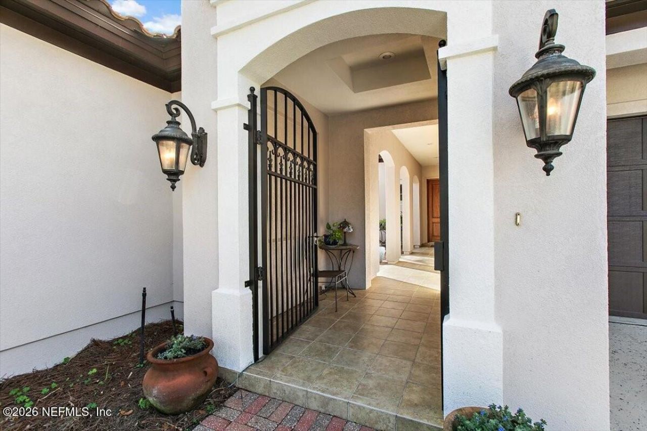 Experience timeless Mediterranean elegance in the gated community of Palermo. Centered around a charming private courtyard, this beautifully designed residence blends classic architecture with inviting indoor-outdoor living. A detached casita with a full bath opens to the courtyard( 4th bedroom), offering an ideal space for guests, a private office, or a quiet retreat. The courtyard also offers wonderful potential to create a private plunge pool or outdoor oasis. The main home features spacious living areas designed for both comfort and entertaining, highlighted by two gas fireplaces located in the living room and family room. Downstairs, a beautiful library provides a quiet and sophisticated space that could also serve as an office or flex space. Upstairs, the home offers 3 well-appointed bedrooms including a primary suite with a private balcony overlooking the property, while one of the guest bedrooms features a charming Juliet balcony that adds a touch of European Character. The The backyard provides additional space with room to design and build a custom pool, creating the perfect setting for outdoor living and entertaining. The home also includes a three-car garage.Perfectly positioned off Hodges Boulevard, this home offers exceptional convenience to world-renowned healthcare at Mayo Clinic, the beautiful beaches of Ponte Vedra Beach, and the vibrant dining and cultural scene of Jacksonville. A rare opportunity to enjoy distinctive Mediterranean architecture, privacy, and an unbeatable location. Washer and Dyer do not Convey!