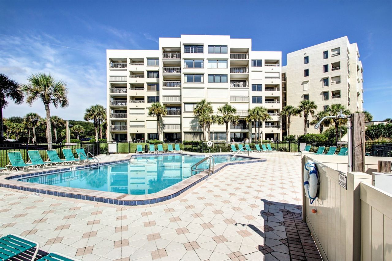 Move in ready first floor residence offering ocean views and convenient ground level access. Inside, the kitchen and bathroom have been tastefully updated, and freshly painted walls with smooth ceilings create a bright, refreshed feel. Sliding glass doors in both the living room and bedroom open to the patio, allowing for seamless indoor outdoor living. Storm shutters provide added protection and peace of mind. Community amenities include two oceanfront pools, private boardwalk beach access, and clay tennis courts, all within a gated and meticulously maintained setting off the Amelia Island Parkway.