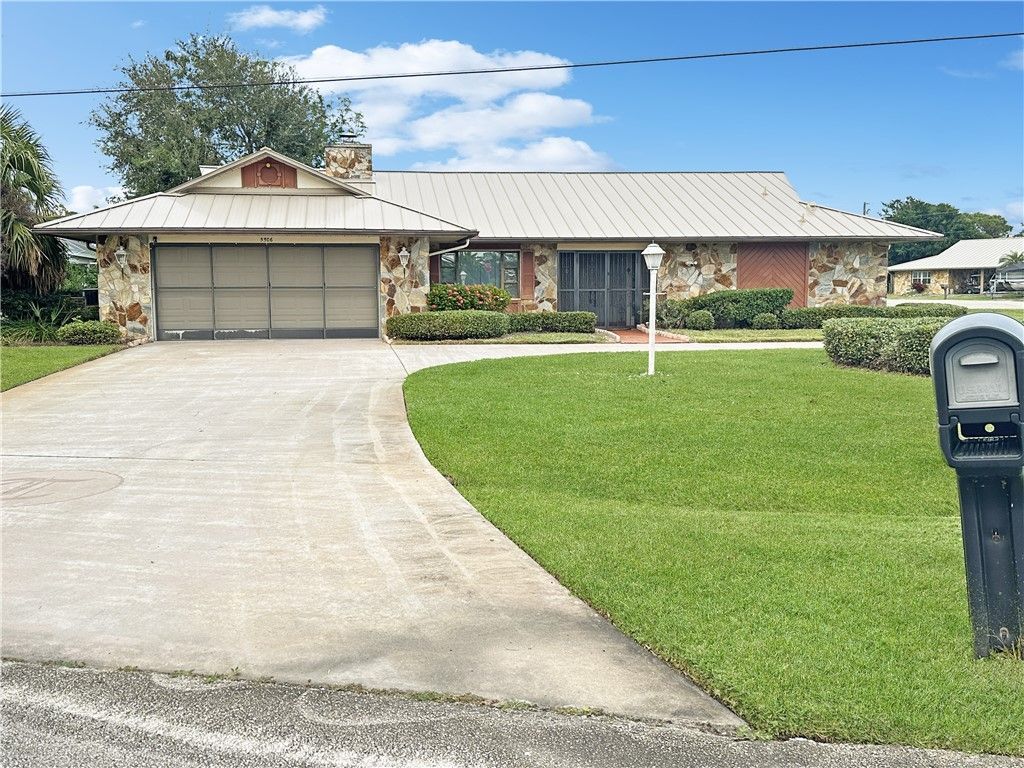 CBS home w/a 2021 metal roof. Split floor plan, sizable living room with slider access to screen-enclosed, freshly refinished inground pool?The family room, w/fireplace, flows seamlessly into a kitchen equipped with ample cabinets, vast countertop space, & a convenient recipe/desk area, complemented by a snack bar & an inviting family dining area. Master bedroom has double vanities & his/her walk in closets. 2018 A/C unit, and a 2017 water heater. Close proximity to shopping, dining, schools, parks, golf, beaches, and major roadways, all ensuring your familys needs are always within reach.