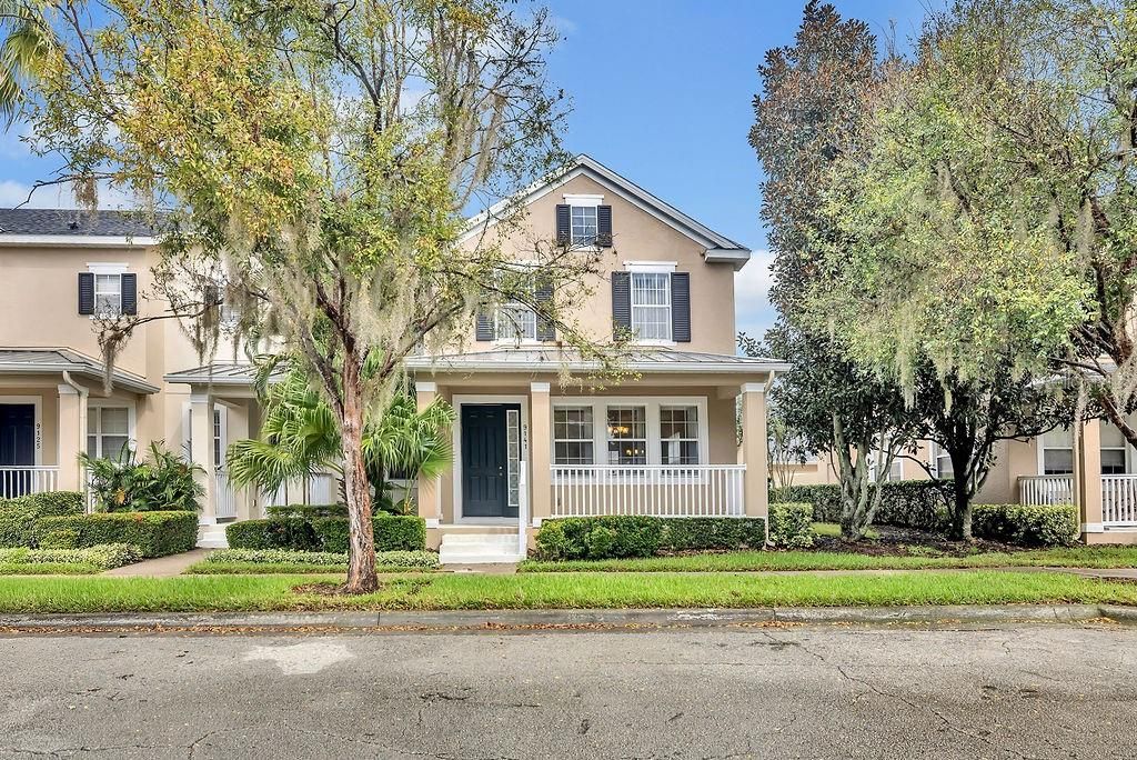 One or more photo(s) has been virtually staged. Welcome to this beautifully upgraded corner townhome in the heart of Lake Nona's NorthLake Park, a community that perfectly blends comfort, convenience, and a true sense of neighborhood living. This spacious 4-bedroom, 3-bath residence features a flexible floor plan with a downstairs bedroom ideal for guests, office, or multigenerational living. The open-concept design showcases elegant engineered hardwood floors, a bright living and dining area, and a modern kitchen that connects to a private courtyard, perfect for entertaining or relaxing under the stars. Recent updates include a new roof, gutters, and exterior paint completed in 2023, providing style and peace of mind. Upstairs, the primary suite offers a serene retreat with a walk-in closet, dual vanity, soaking tub, and separate shower. A two-car garage, inviting front porch, and access to A-rated schools, parks, and the YMCA with membership included make this home an exceptional find in one of Lake Nona's most desirable neighborhoods. Additional Upgrades: The interior has been freshly painted, the A/C recently serviced and maintained, and the property includes a full security camera system with six cameras for your peace of mind. Come see it today, you'll fall in love!